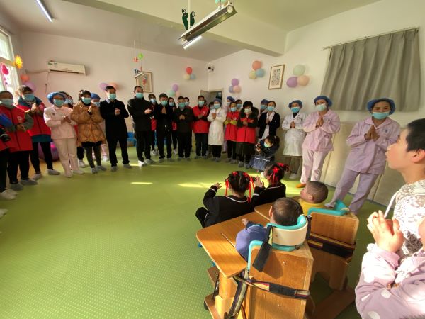 捐赠仪式结束后,由院领导陪同前往爱心病房参观慰问。市人大常委会副主任穆宏地及其他领导们向工作人员详细询问了孩子们的生活情况及身体状况,并与孤残儿童“零距离”接触,实地参观了孤残儿童的衣食住行。孩子们用热情洋溢的笑脸和精湛的歌舞欢迎我们的到来,市领导抱着孩子嘘寒问暖…… 孤独残疾智障儿童需要亲人、社会的关爱。我们的慰问品不重要,幼小的心灵盼爱,爱胜于天!