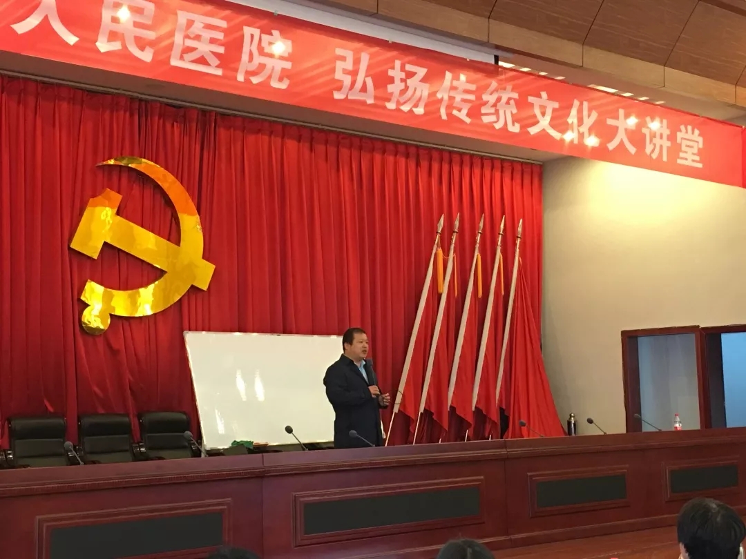 国无德不兴,人无德不立。为激励全院医务人员崇德向善,进一步提高自身政治素质和党性修养,充分发挥大型公立医院公益性质和辐射带动作用,2019年4月13日,医院邀请道德大讲堂着名讲师祝亮平先生来院为医务人员进行以“孝义、感恩、责任”为主题的传统文化讲座。