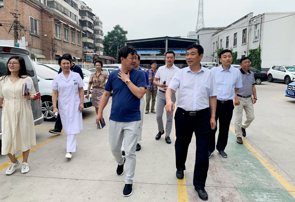 7月8日,开封市中心医院领导刘静宇、周霖、朱亚萍、刘钊、谢文忠带领党办、院办、总务科、宣传科、门诊办、保卫科等科室负责人员进行全院创文督导工作。